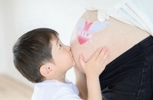 お兄ちゃんになる男の子からママのお腹と赤ちゃんにちゅー♡