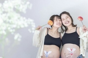 仲良しなお2人のマタニティペイントをさせていただきました♡