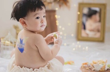 ベビーペイントをしてスマッシュケーキをした時のお写真🎂